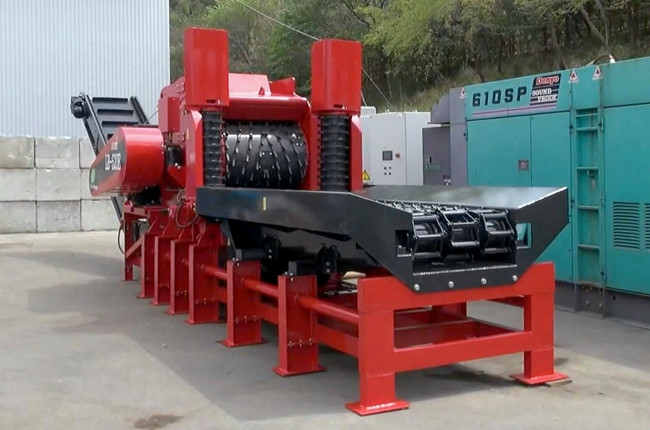 Le rouleau d’alimentation inférieur fait 335 mm de diamètre et 940 mm de large, le rouleau supérieur fait 756 mm et 868 mm de large, les deux rouleaux verticaux font 335 mm de diamètre et 810 mm de hauteur, ils sont tous munis de crocs très agressifs.