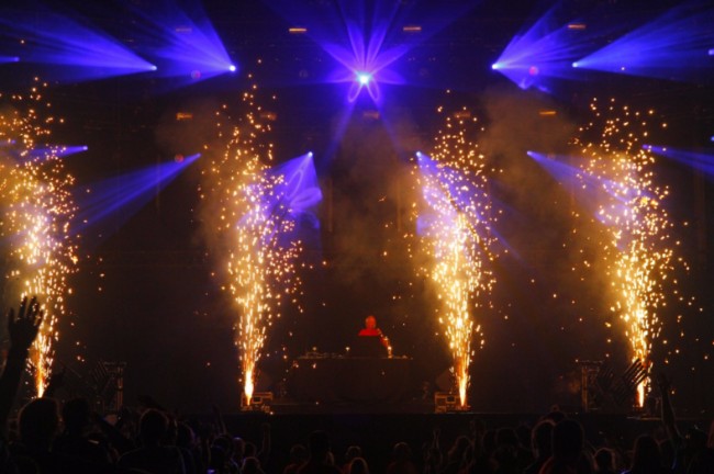 Ce type de pyrotechnie d'intérieur est très spectaculaire car à proximité du public.