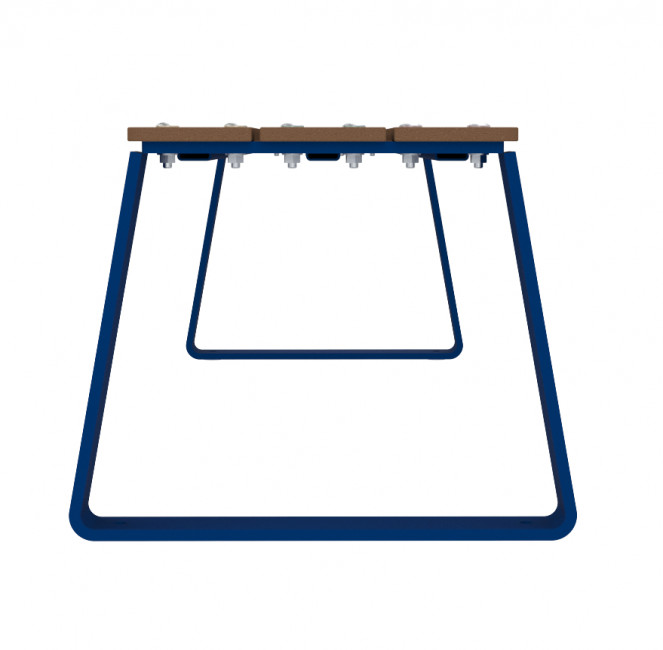L’assise est composée de lames en compact HPL, une matière adaptée aux usages intensifs en collectivité.