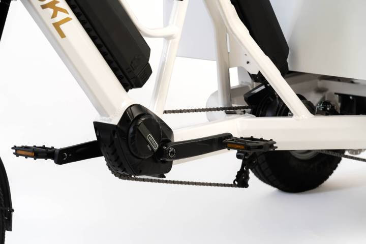 Grâce à son moteur pédalier de 250 W avec un couple de 130 Nm, vous disposez d’une vraie réserve de puissance. Vous démarrez facilement, même chargé au maximum, et vous grimpez les côtes sans effort. Avec sa capacité de 300 kg PTAC, ce triporteur est pensé pour vos usages intensifs en ville.