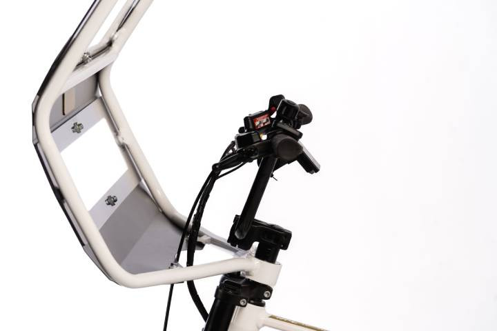 Grâce à son moteur puissant de 130 Nm et sa batterie de 600 Wh, vous pouvez réaliser vos tournées jusqu’à 40 km en toute sécurité.