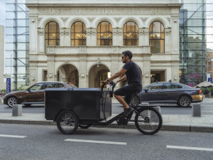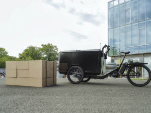 Ce vélo cargo à fonctionnement électrique permet de réaliser des livraisons sans effort.