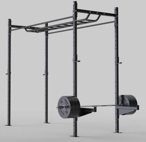 Il s'agit en effet d'un type de cage crossfit dotée d'un équipement complet avec ses 2 postes à squat reliés par 2 barres fixes, son échelle de 2800 mm et sa paire support pour barre olympique.