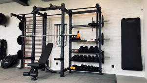 Le rack est modulable, robuste avec une poste de squat et des étagères pour ranger vos accessoires et les avoir à portée de main.