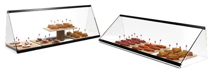 Cette vitrine neutre à poser sur un comptoir est un présentoir de table pour bar, restaurant, cafétéria, boulangerie et pâtisserie.