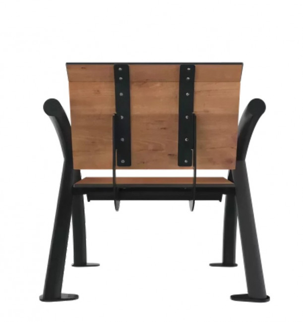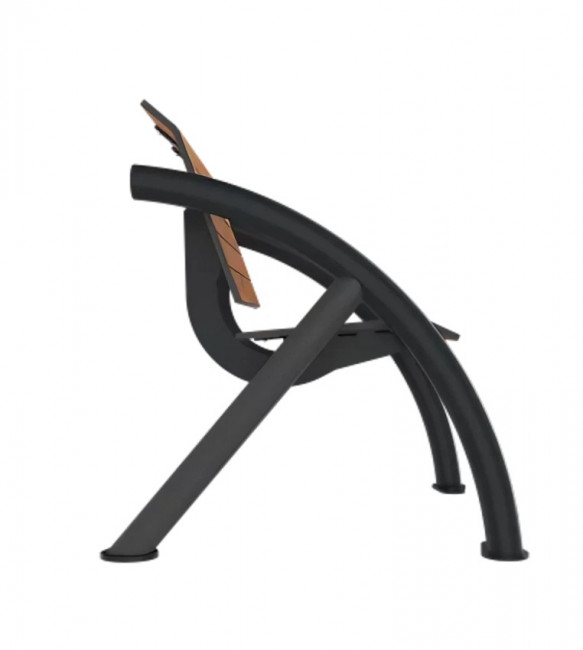 Les accoudoirs intégrés jouent un double rôle : ils structurent visuellement le banc public en HPL et offrent un appui pratique pour s’asseoir et se relever.