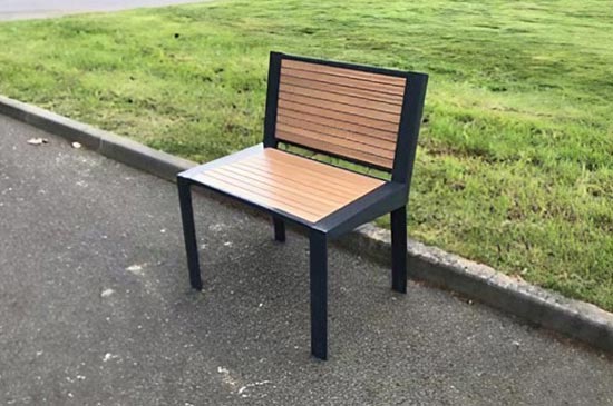 Ce fauteuil de ville en stratifié est conçu pour s’intégrer dans les espaces publics tels que les parcs, places ou rues.