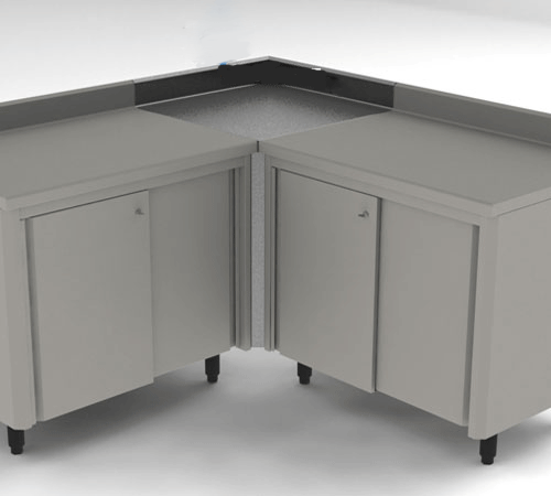 - Dessus inox épaisseur 15/10e renforcé par un panneau collé en mélaminé hydrofuge ép 19 mm