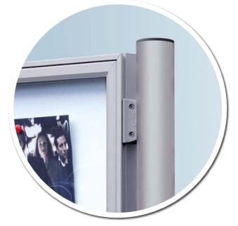 - Poteaux ronds de 76 mm de diamètre, en aluminium anodisé argent ou peint.
