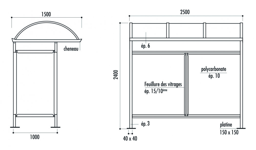 - Les bardages latéraux et fond sont en polycarbonate alvéolaire