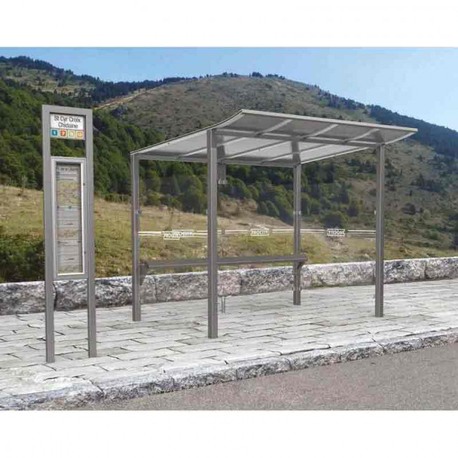 Cette station bus protégée s'adapte parfaitement à vos besoins d'aménagement urbain grâce à ses deux longueurs disponibles et ses multiples options de configuration.