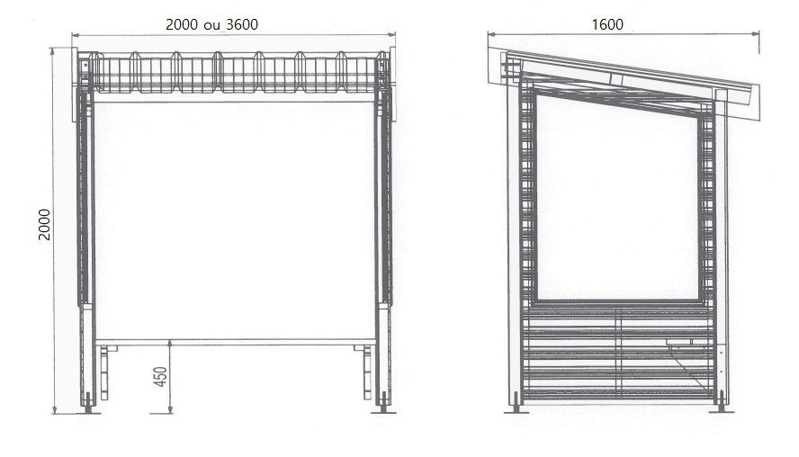 Afin de répondre aux différentes configurations de vos arrêts, notre abri bus en bois est disponible en deux dimensions : L.2000 ou 3600 x l.1600 x H.2200 mm.