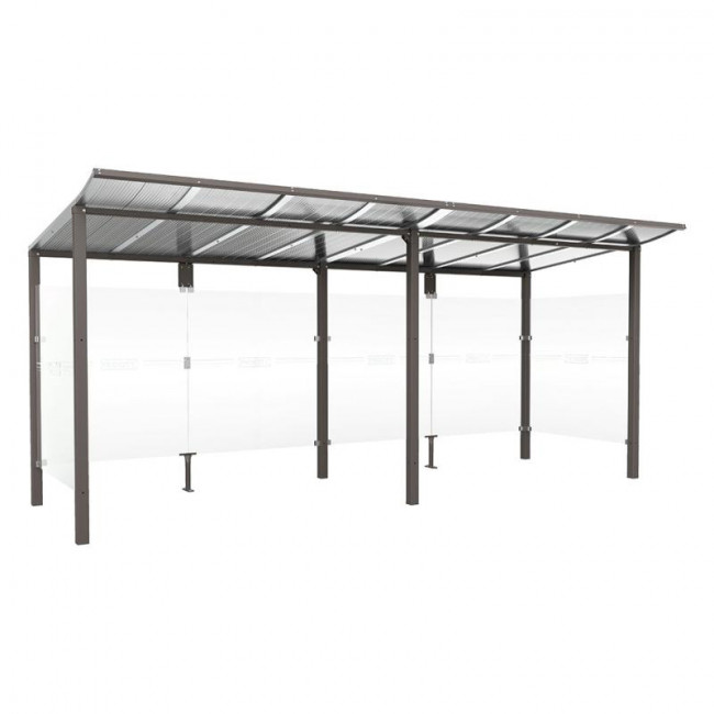 Les bardages latéraux et de fond sont réalisés en verre sécurisé de 5 mm, apportant visibilité et sécurité aux utilisateurs.