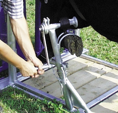 Équipée d'un treuil patte arrière réglable, elle permet d'ajuster les hauteurs de travail en fonction de la taille de l'animal.