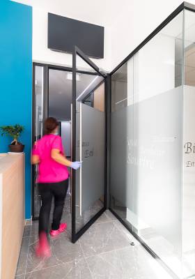 Vous recherchez le calme sans renoncer à la transparence ? Grâce à sa plinthe automatique invisible, la porte vitrée bureau acoustique offre une isolation de 37 dB (Rw). Elle réduit les nuisances sonores et favorise la concentration dans vos bureaux ou salles de réunion.