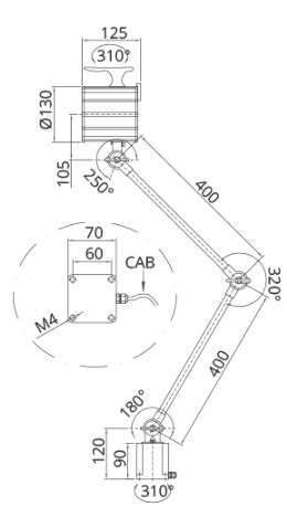 - Dimension bras : 2 bras (400 mm + 400 mm)