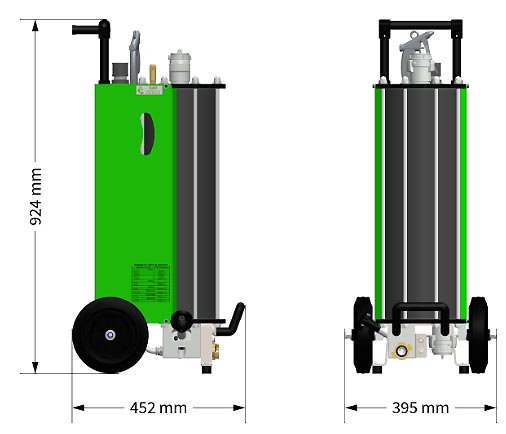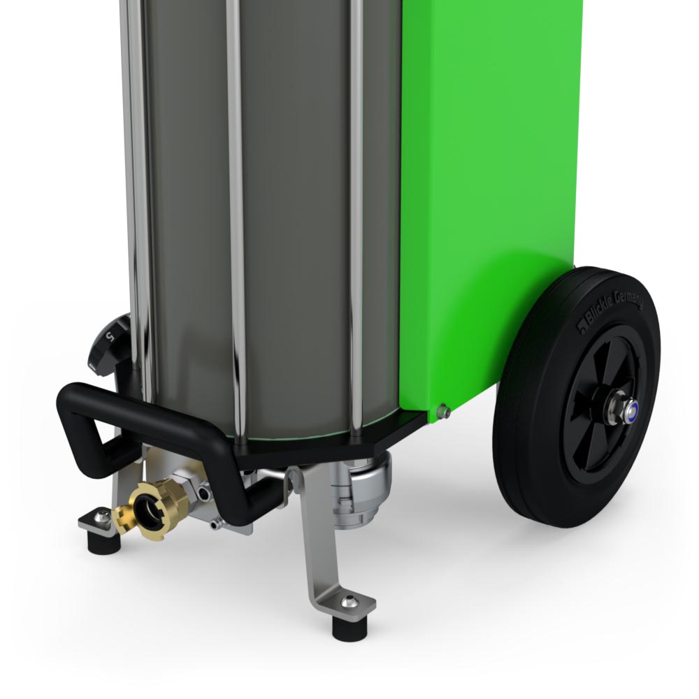 Avec ses poignées avant et arrière ergonomiques, ainsi que des roues de grand diamètre (Ø200 mm), l'aérogommeuse est facile à transporter sur tout type de terrain, même dans les espaces confinés.