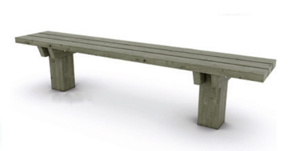Assise et pieds en pin classe IV Dimensions (L x l x H) : 200 x 45 x 45 cm A sceller sauf modèle Plœmeur et Pontl’Abbé
