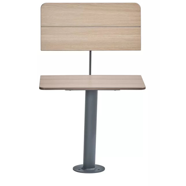 Cette configuration 1 place est parfaite pour ponctuer un parcours, créer des zones d’attente ou compléter un banc public compact HPL plus long.