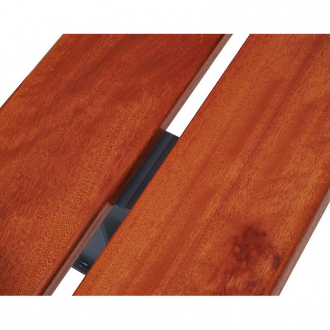 - Assise : en bois exotique épaisseur 36 mm, finition lasurée (chêne clair ou acajou).