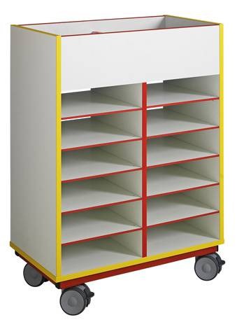Chariot de rangement pour maternelle biface - 2 x 6 cases - 2 compartiments en...