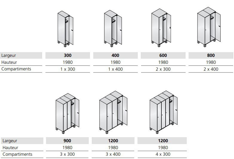 Vous avez également le choix entre des modèles avec 1 à 4 portes et différents agencements de compartiments.