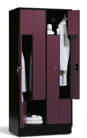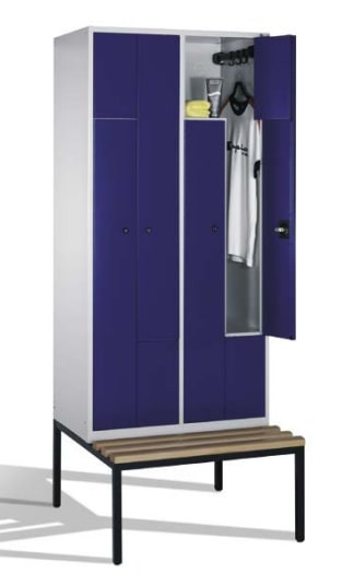 Cette armoire vestiaire avec mécanisme de porte pliante permet un gain de place pour les vêtements longs.