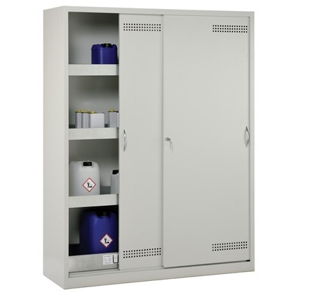 Cette armoire de sûreté à portes coulissantes est conçue pour le stockage en toute sécurité de produits chimiques, toxiques et inflammables (Produits phytosanitaire).