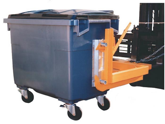 je recherche un basculeur de poubelles (240, 360 et 660 L) préhensible par chariot élévateur.