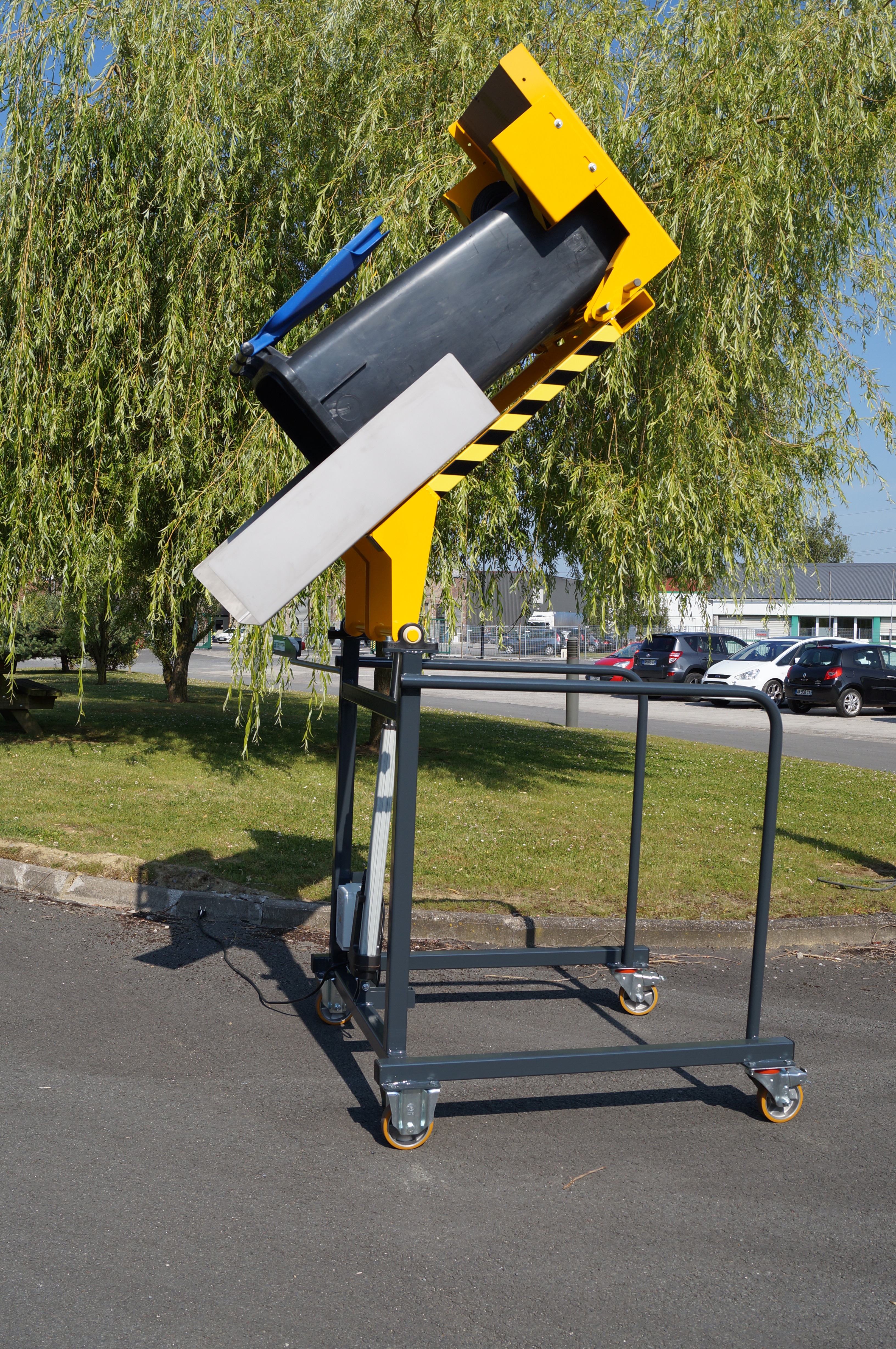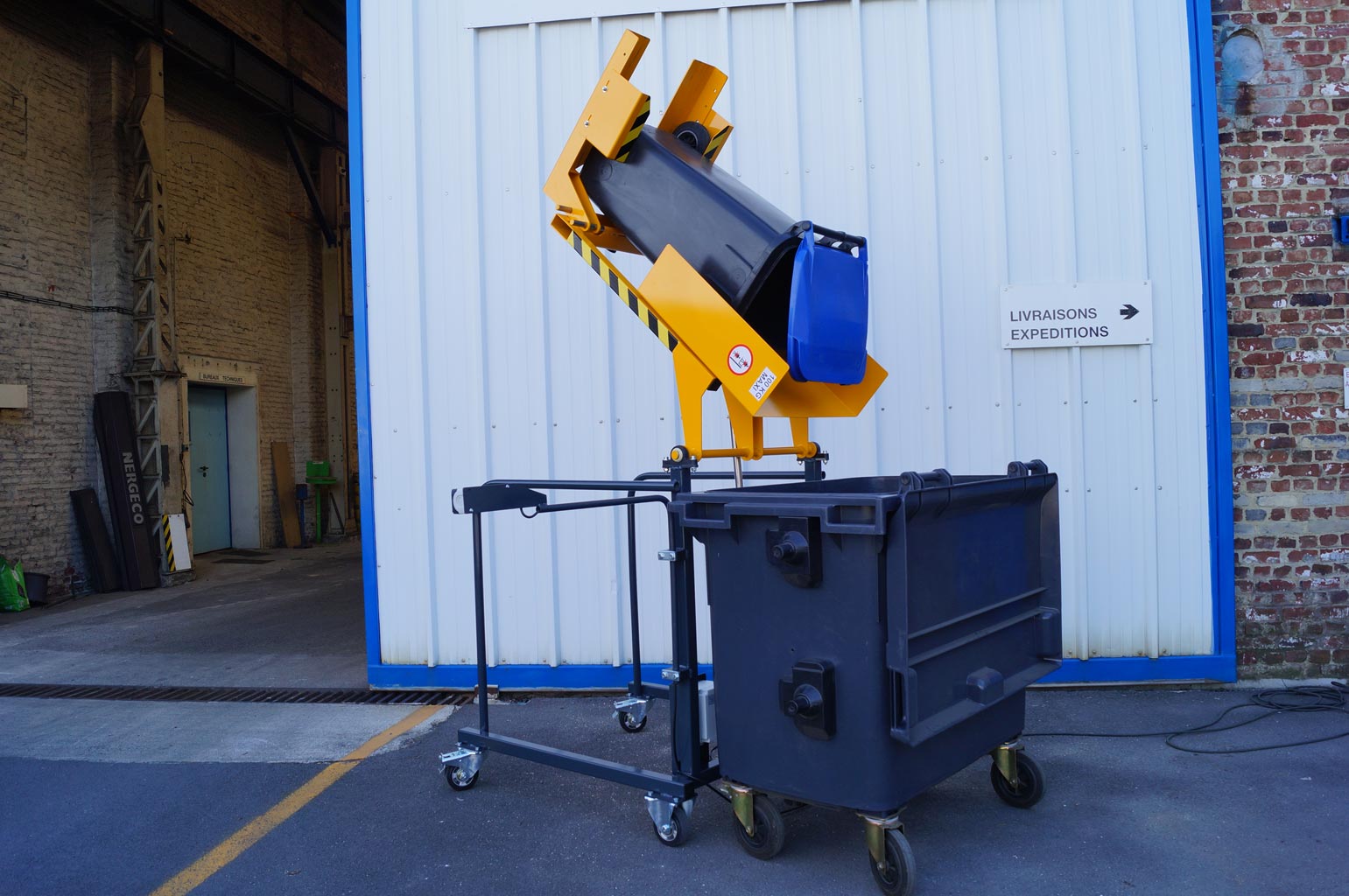 19/11/2023besoin d"un dispositif pour soulever et basculer des poubelles dans de plus grand conteneurs ,il ne doit pas etre trop gros et manipulable