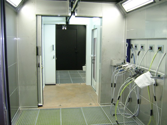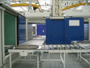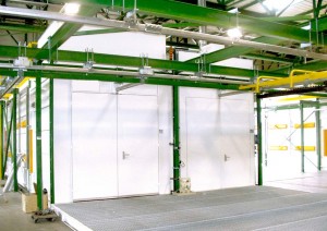 - Cabine fermée de ressuage par pulvérisation électrostatique avec ventilation verticale (dimensions: 4000mm x 4000mm x 3500mm)