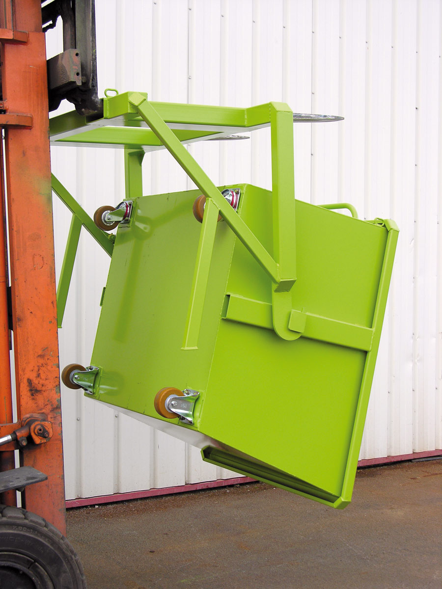 Benne de manutention basculante sur chariot élévateur fenwick Charge en dépassant 500 Kg. Cordialement
