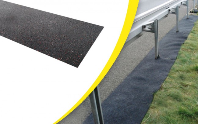 27/02/20195 plaques de 0,40x0,40 m (ou 1 rouleau de 2 m de longueur mini. en largeur 0,40 m mini.) épaisseur entre 8 et 12 mm, densité de 750 à 850 gr./m², 100% recyclé, indéchirable, perméable et résistant aux UV. + 20 clous de fixation au sol.