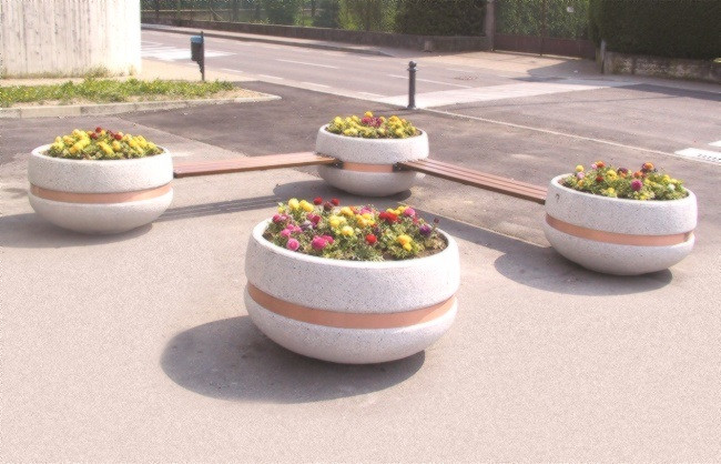 Offrez à vos espaces publics ou privés un aménagement à la fois pratique et élégant avec notre jardinière béton avec banc bois.