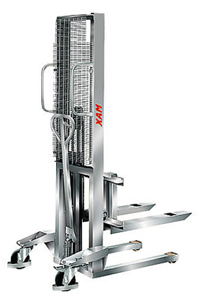 Gerbeur manuel, capacité 400kg,hauteur de levée entre 2 et 4 mètres pour palette grand format 3mx2m