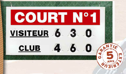 16/09/2013Bonjour,nous sommes à la recherche de 4 panneaux score tennis.merci de nous faire parvenir un devis avec délais et frais de livraison,ainsi qu"une fiche technique.