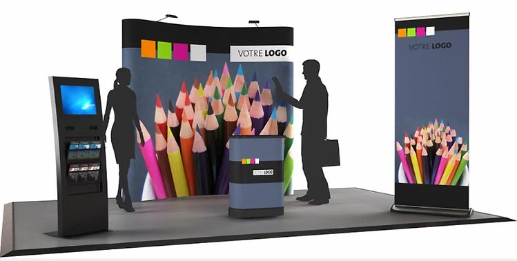 Nous vous proposons aussi des kits complets pour salons, stands exposant, comptoirs, murs d'images afin de mettre en valeur l'image de votre marque.