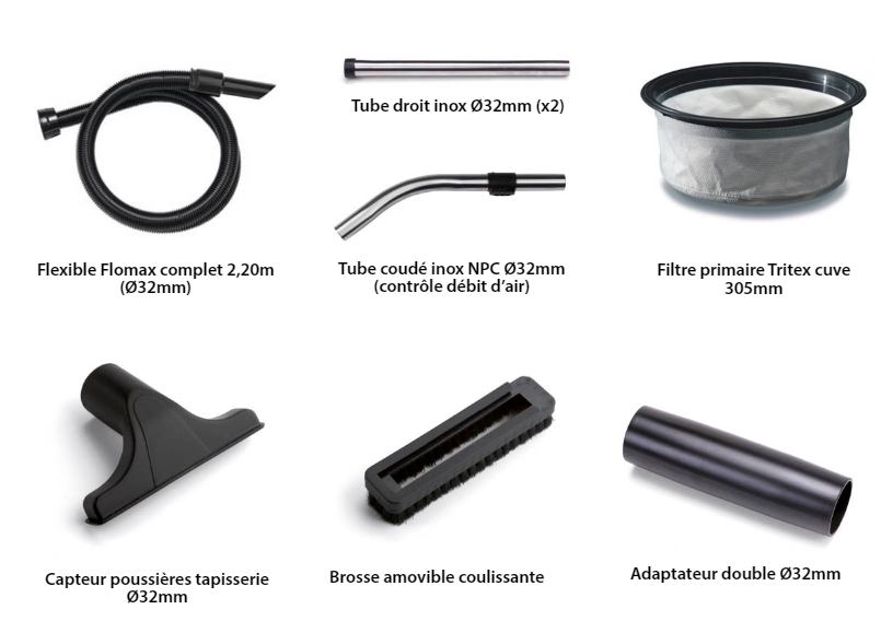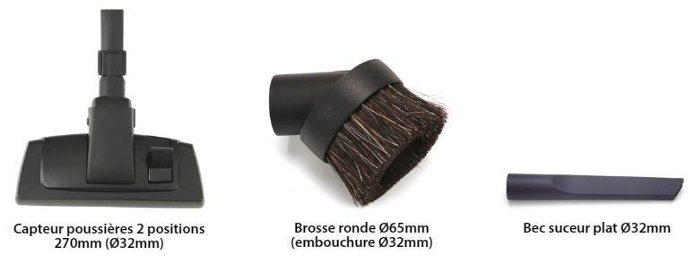 Principaux usages : nettoyage de bureaux, commerces, hôtellerie, collectivités, prestataires propreté, avec accessoires Ø32 mm et kit AS0 inclus.