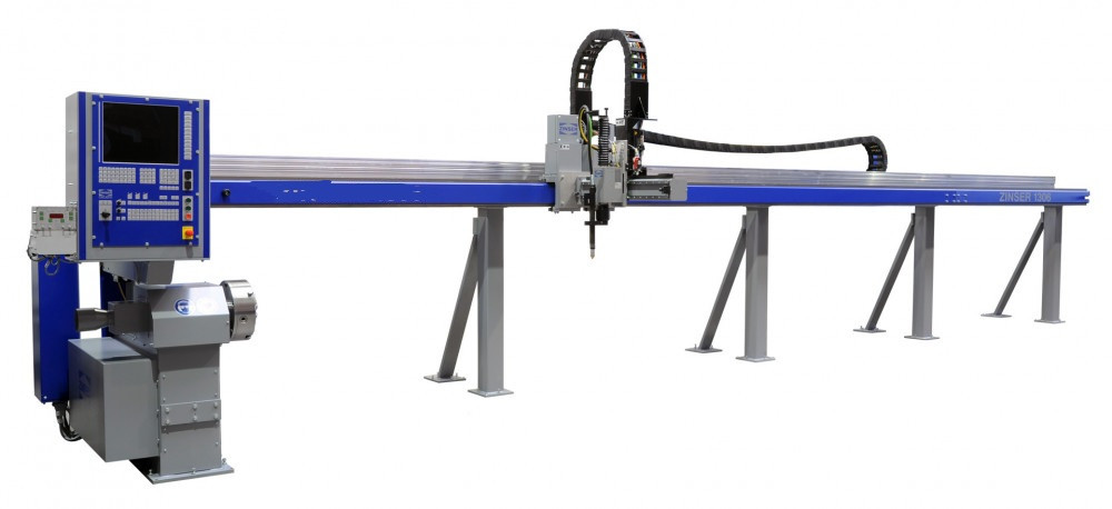 - Machine de découpe avec axe longitudinal (X), axe de rotation (A), et pour la 1306 un axe supplémentaire par la potence (Y)