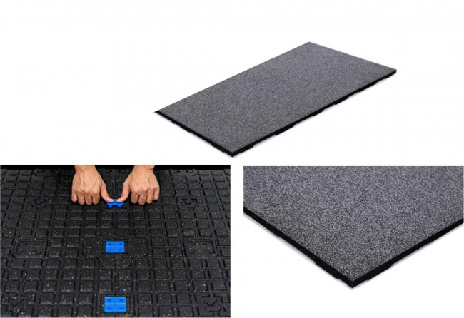 Ces dalles 100x50 cm d'une épaisseur de 20 mm sont conçues pour les salles de Fitness, les Box de Cross Training et les collectivités