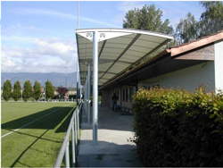 dans le cadre d"une réhabilitation d"un stade de rugby, nous souhaitons implanter un abri spectateurs sur un espace d"environ 20m sur 5m.