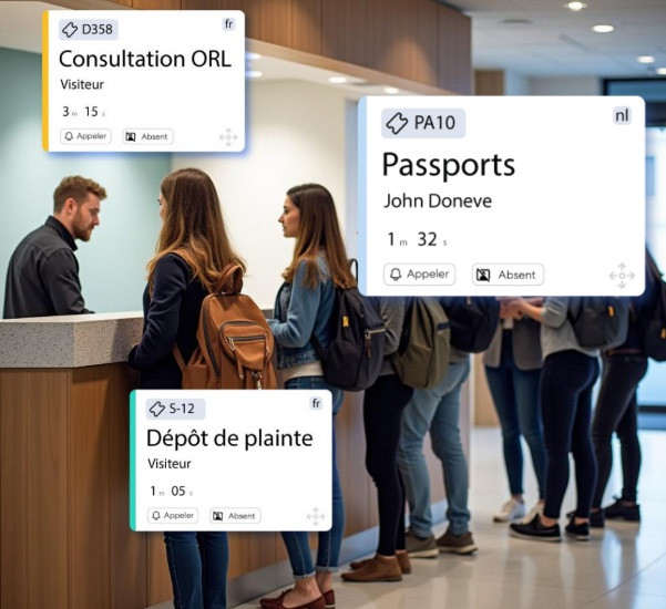 - Rendez-vous en agence (avec gestion des flux et file d’attente)