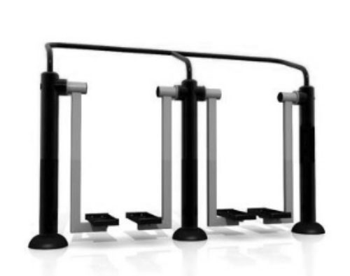 - Les pièces additionnelles, caches boulonnerie, assises, cale-pieds, sont en polyéthylène basse densité, traité anti-UV, anti-statique et anti-rayure, pour donner à l'appareil le maximum de mesure de sécurité.