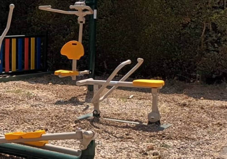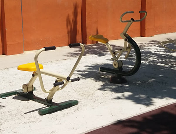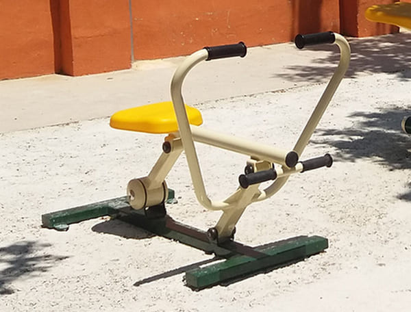 Appareil de fitness extérieur type rameur permettant d'améliorer les muscles des articulations des jambes et des bras.