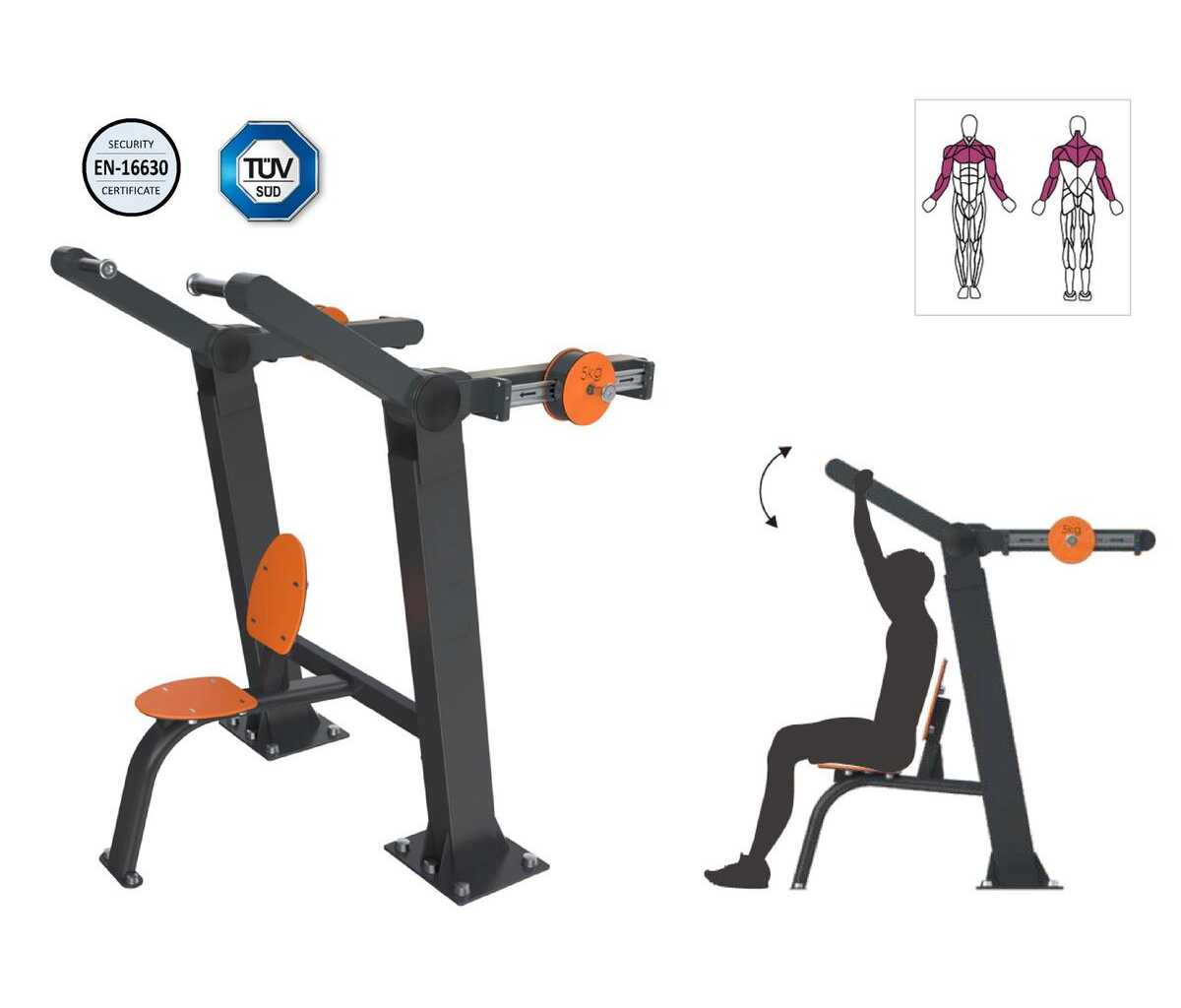 Machine de tirage dorsal en acier pour extérieur - Poids utilisateur : 140 kg