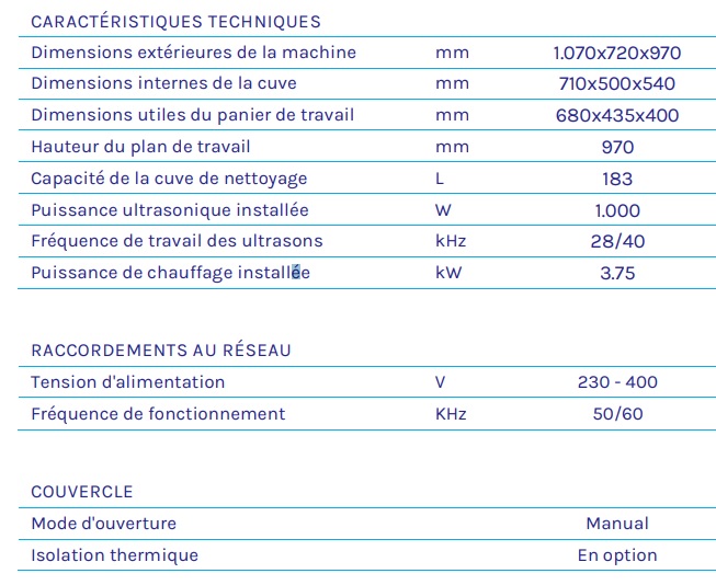Construite avec des matériaux de qualité et une attention méticuleuse aux détails, notre machine à ultrasons 150 litres est conçue pour offrir une performance durable dans les environnements industriels les plus exigeants.
