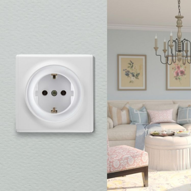 Elle est compatible avec diverses plaques de finition, que ce soit en plastique ou en verre.