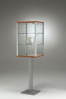 La vitrine d'exposition sur pied en bois est un produit proposé par un groupe qui commercialise tout type de vitrine et matériel d'exposition créé en 2008, après 18 ans d'expérience professionnelle dans les métiers du verre.
