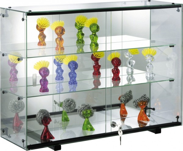 Cette vitrine d'exposition dispose de 2 portes coulissantes en verre trempé épaisseur 5 mm pour un bon aménagement de l'espace.