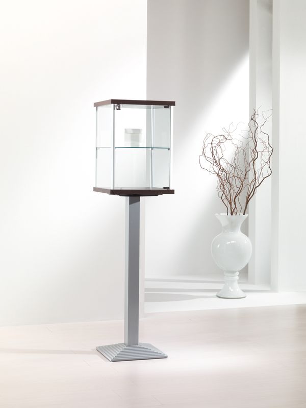 La vitrine d'exposition sur pied est proposée par un groupe qui commercialise tout type de vitrine et matériel d'exposition créé en 2008, après 18 ans d'expérience professionnelle dans les métiers du verre.